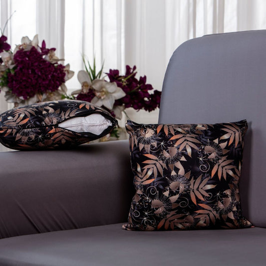 DivineTrendz Exclusive - Black leaves Cushion Cover
