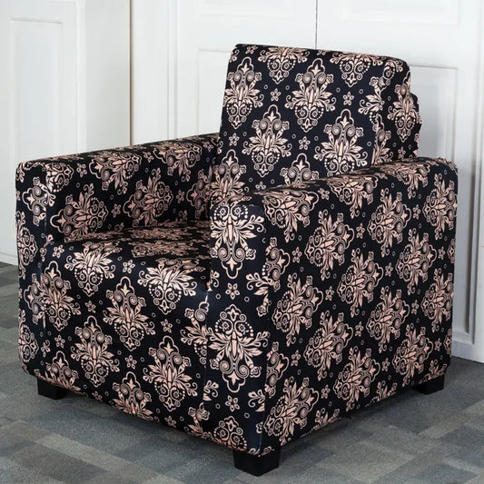Black & Beige Abstract Elastic Sofa Cover