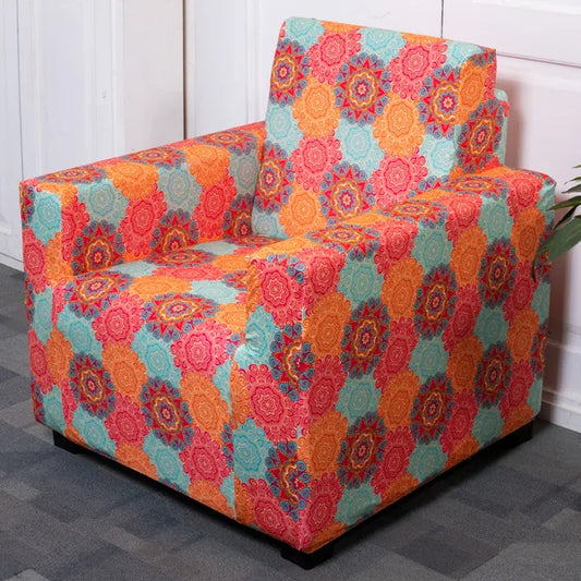 Multi-Coloured Vintage Motifs Elastic Sofa Cover