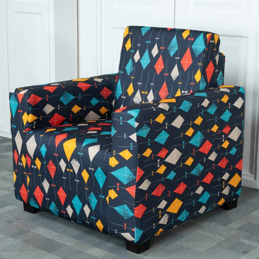 Navy Blue Abstract Elastic Sofa Cover